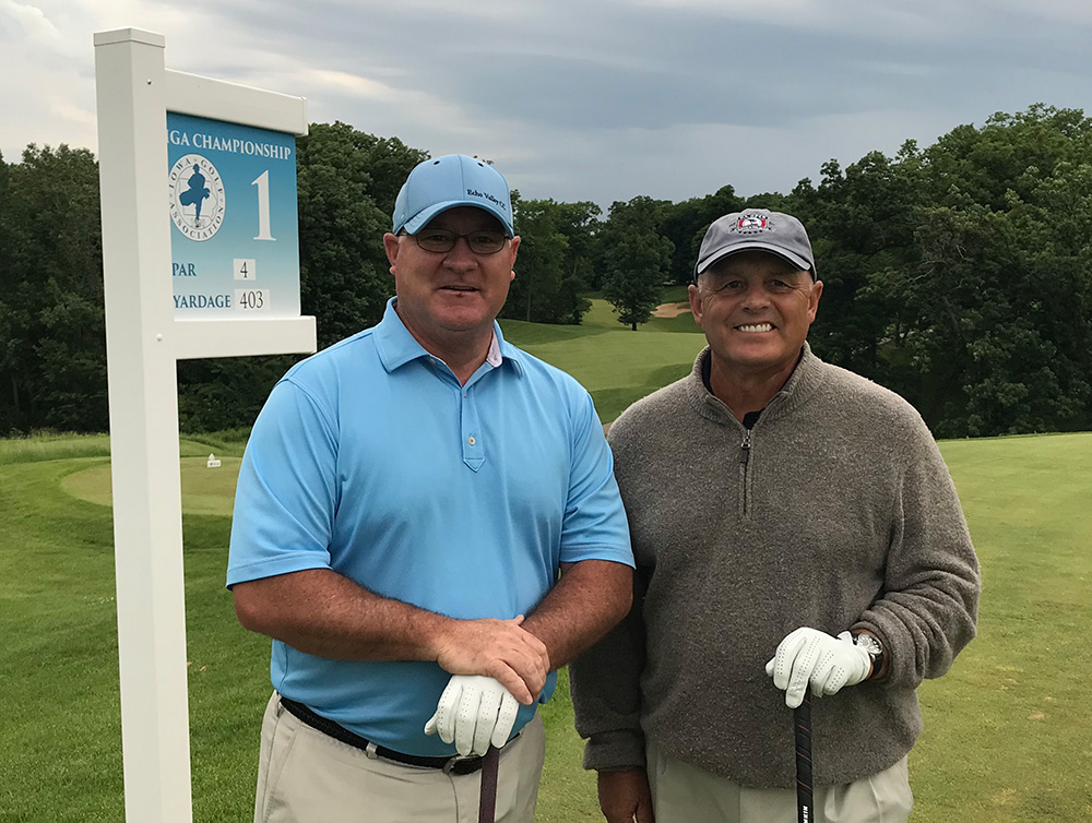 In the Championship on Saturday morning Tom Norton of Muscatine will face Bret Taylor of Booneville in one semifinal while Joe Palmer of West Des Moines squares off against Pat Ryan of Marshalltown in the other. Norton vs. Taylor is a rematch from last year as Norton defeated Taylor in the quarterfinals at Fort Dodge CC. Meanwhile, Palmer is gunning for his 3rd Senior Match Play crown, as he won the title in 2013 at Fort Dodge CC and again in 2015 at Veenker Memorial GC in Ames.