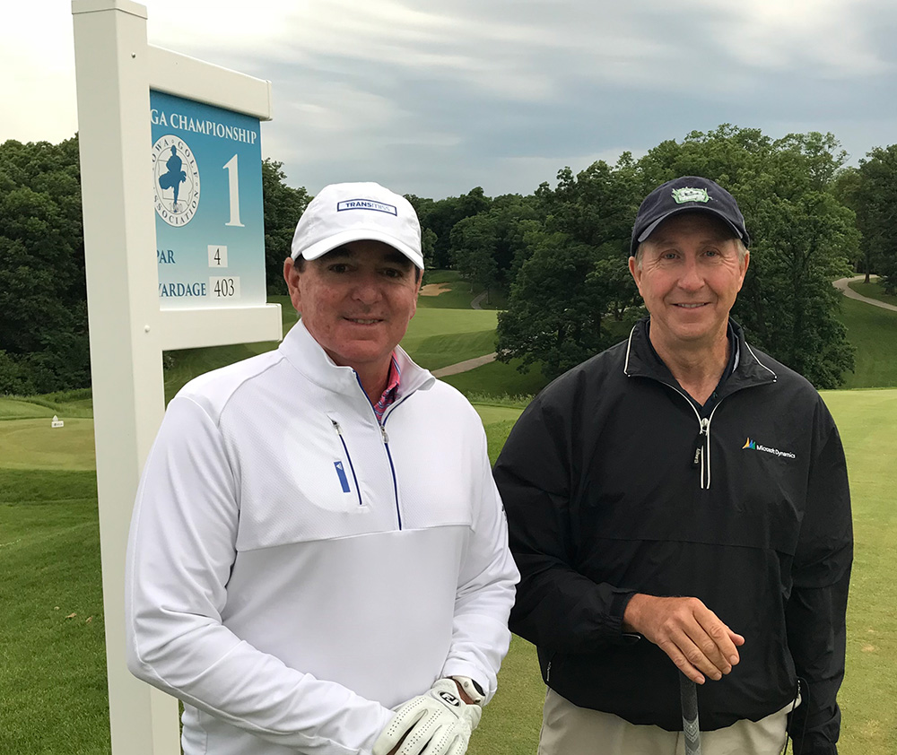 In the Super-Senior bracket (65+), reigning IGA Super-Senior Player of the Year Rob Christensen will face John Peters for the championship, as both won hard fought semifinal matches. Christensen won the 18th hole in his semifinal match against Steve Kahler to send it to extra holes, where he won on the 19th hole. Then Peters managed to drain an 18-foot birdie putt on the final hole to defeat Jim Butler 1 up in his semifinal match.